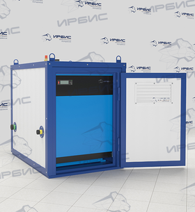 Котел смонтирован в утепленном металлическом боксе. Стенки бокса выполнены в виде трехслойных конструкций, состоящих из профильных стальных листов с внутренним утеплением из минераловатных плит толщиной 50 мм. Для удобства обслуживания и ремонта Ирбис НК передняя панель выполнена открывающейся. На задней панели имеются технологические люки для настройки, технического обслуживания и ремонта. С удаленного пульта наблюдения оператор может контролировать состояние уличного котла во время работы. При возникновении аварийной ситуации котел выключается автоматически и подает сигнал на удаленный пульт наблюдения.