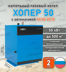 Напольный газовый котел «Хопер 50» с автоматикой КСУБ 20.10 предназначен для отопления жилых, промышленных, складских и прочих помещений площадью до 500 м2. Программируемая погодозависимая автоматика КСУБ позволяет существенно экономить на топливе, так как подача топлива регулируется автоматически в зависимости от изменения температуры наружного воздуха. Газовый котел «Хопер 50» с КСУБ 20.10 не требует постоянного присутствия обслуживающего персонала и может управляться дистанционно с пульта управления.